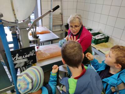 Im Rahmen des Projekts „Alltagskompetenzen“ ging es mit selbst geernteten Äpfeln nach Geiselhöring zum Obst- und Gartenbauverein. In dessen Mosterei wurden die Äpfel verarbeitet. In der Presse wurden stolze 100 Liter Apfelsaft gepresst. Die Kinder durften selbst die Äpfel in die Presse geben und den Weg der Äpfel zum abgefüllten Saft in dieser kleinen Fabrik beobachten.