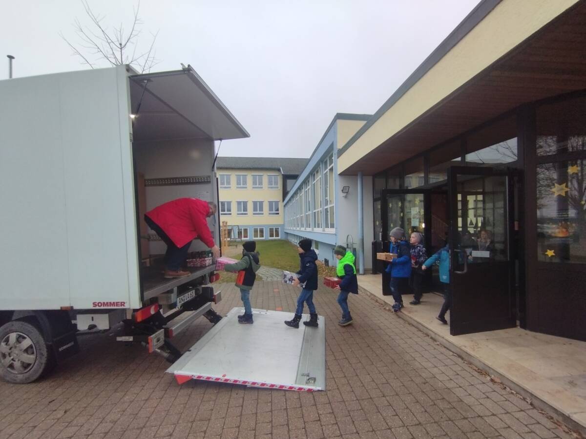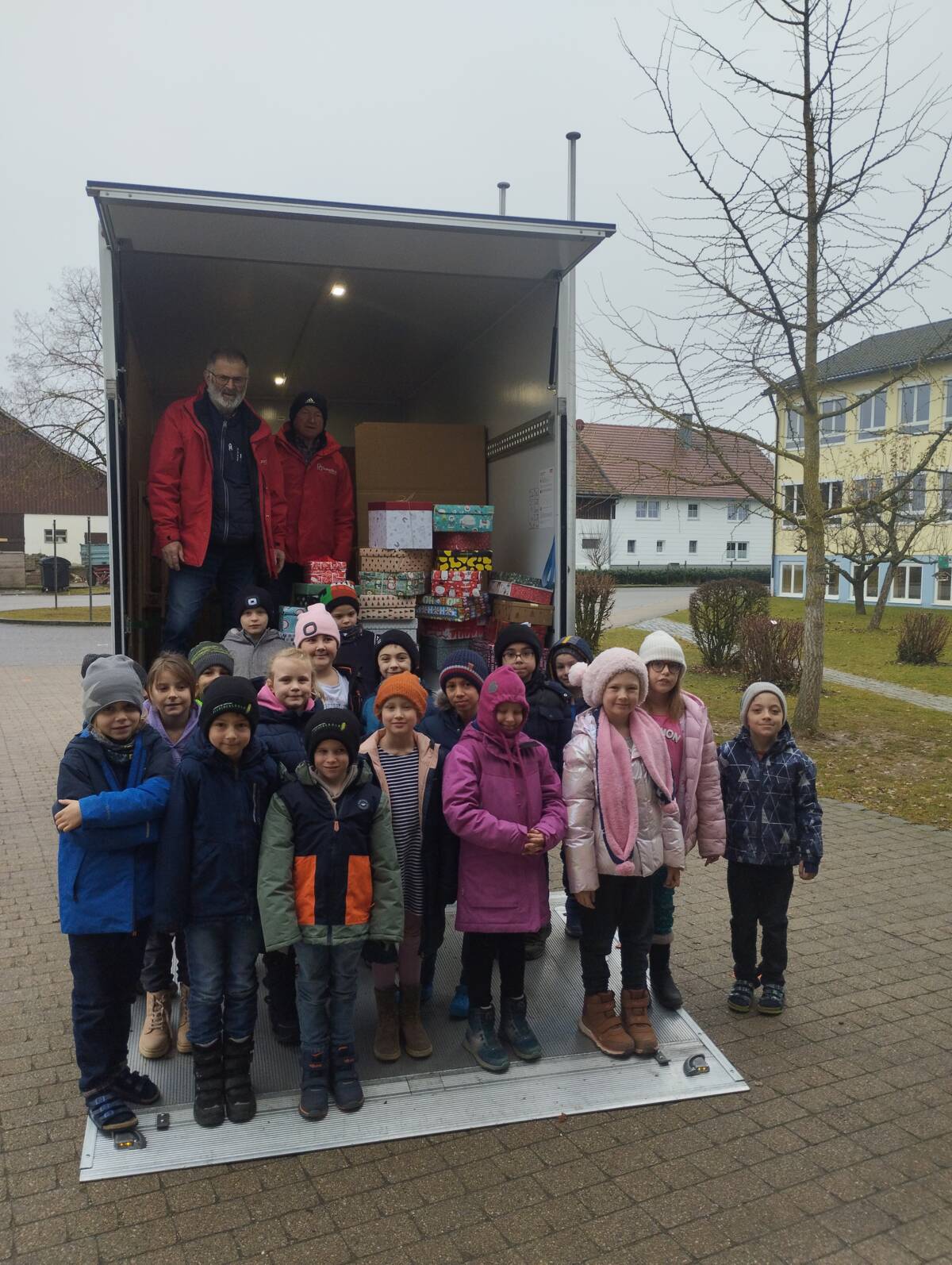 Endlich war es wieder so weit. Die Weihnachtspäckchen der Aktion „Geschenk mit Herz” von Humedica wurden abgeholt und machten sich auf den Weg nach Osteuropa um pünktlich an Weihnachten anzukommen. Freudig übergaben die Schülerinnen und Schüler der Grundschule Laberweinting fast 70 liebevoll eingepackte Päckchen.